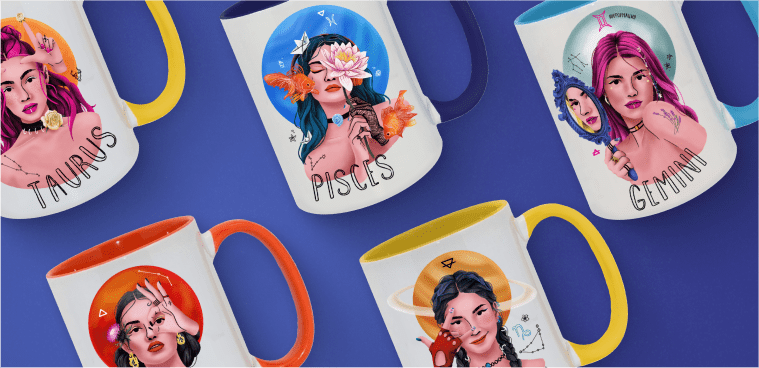 Вместе с талантливым иллюстратором мы разработали 12 уникальных иллюстраций. В каждой героине наших иллюстраций заложены: стихия, присущая их знаку, черты характера, талисманы из камней и основной цвет. Каждая героиня получилась неповторимой, со своим уникальным шармом и стилем.